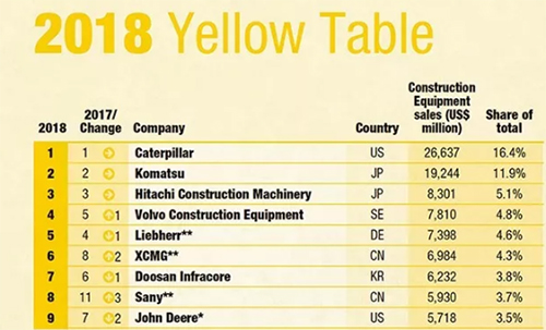 XCMG entrou nos Top 50 rankings globais de máquinas de construção em 2018