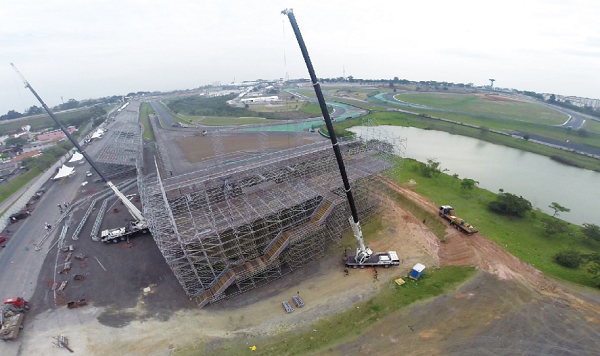 Recently, Interlagos Track again has been put into expansion work, Two XCMG’s cranes, one BR750 and one BR250, get involved into the job. They work very well. People in the site say: “They are right tools in the great place”.