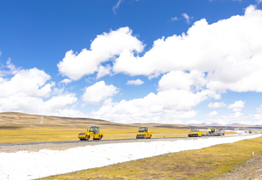 يعتبر أول طريق سريع عند الارتفاع والبرودة العالية الذي يمر بمنطقة الأرض الدائمة التجلد في هضبة تشينغهاي – التبت وخلق معجزة في تاريخ إنشاء الطريق عند هضبة تشينغهاي – التبت: يستعمل معدات الطريق المتكاملة XCMG في موقع العمل لدحل التراب المستقرة عند الطبقة الأساسية والتمهيد الزيتي عند الطبقة السطحية ودك أساس الطريق وغيرها من الأعمال المطلوبة في سطح الطريق. إن مدحل الطريق بالعجلة المطاطية من XP301 و XP303ومدحل الطريق بالعجلة الفولاذية الثنائية XD131 ومدحل الطريق بالعجلة الفولاذية الأحادية XS223J وموتر كريدر GR180 وفرادة RP952 وغيرها من المنتجات النجمية المسلسلة تعرض قدرة قوية في الهضبة الشاسعة بتشينغهاي وتغلبت على المصاعب والمشاعق لإسهام قوة XCMG في حل مشكلة مواصلات الجمهور وإنشاء الطريق السريع قونغيو ومعالجة الفقر الشعبي في هذه المنطقة!