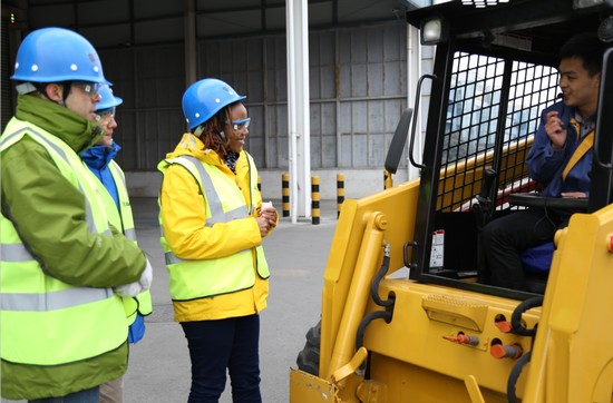 زار " طلبة XCMG تحت التجربة " بعد الظهر الى القاعدة الانتاجية للودرات الذكية الضخمة لمجموعة XCMG و التى تبلغ مساحتها 230 ألف متر مربع ، فما يبلث ان يتعدوا عتبة القاعدة حتى وجدوا ان شاشة العرض الالكترونية الضخمة تعرض لافتة ترحيب باللغة الانجليزية وصفوف افراد مجموعة XCMG المعبرة بصورتى " XIN XIN " و " RON RON " من الشخصيات الكرتونية مما يبعث فى نفوس هؤلاء الطلبة شعور بالدفء و الحنان فى اليوم الشتوى القارص . .