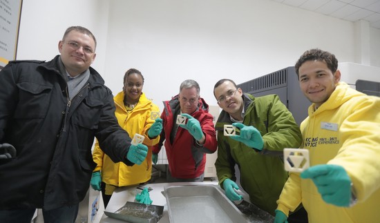 يزور" طلبة XCMGتحت التجربة " مختبرالطباعة ثلاثية الابعاد للوقوف على آخر التطبيقات الريادية و الاكتشافية لتقنية الطباعة ثلاثية الابعاد فى صناعة المكائن الهندسية تحت مساعدة عامل المختبر كما شحذوا باياديهم نموذج logo " الحديث الولادة " لمجموعة XCMG . و تحت مساعدة الفنى المتخصص بات logo ناعمة الملمس و جذابة المظهر و تتحفها لـ " طلبة XCMGتحت التجربة " الخمسة كهدية فريدة من نوعها .