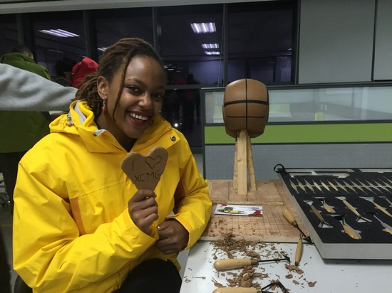 تبين الصورة ان الطالبة Sharon يسكر قلبها بالنشوة و التأثر بعد ان نجحت فى تصنيع بالكدارة شارة تعبر عن حبها لمجموعة XCMG