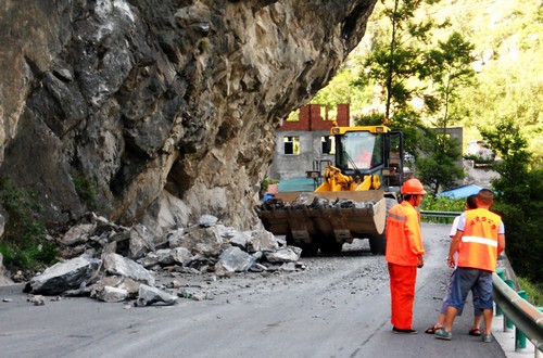 بسبب نزول الأمطار القوي وغيرها من العوامل، في يوم 27-26 يوليو وقع الانهيارات الأرضية عند مخرج قناة هونغتساوبو لخط 212 بالطريق الوطني داخل مقاطعة قانسو وانهارت 500 متر مكعب من الأحجار بقرب النفق مما يقطع مواصلات خط 212 بالطريق الوطني. إضافة إلى ذلك، انهارت المياه بالخط السياحي من محافظ ونشيان بلونغنان إلى زيوجايقو بمقاطعة سيتشوان مما يقطع مواصلات الطريق لمدة قصيرة. وصل لودر XCMG إلى الموقع بأسرع سرعة، ونجح في إصلاح الطريقين بأقصر وقت لاستعادة المواصلات.