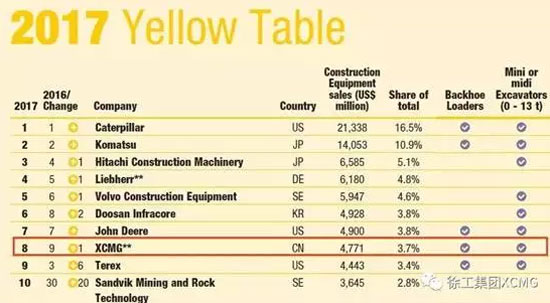 XCMG هي شركة الماكينات الهندسية الصينية الوحيدة في قائمة أكبر 10 شركات الماكينات الهندسية في العالم