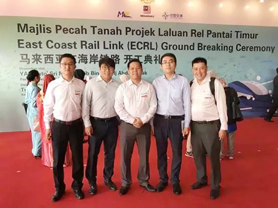 في صباح اليوم التاسع من أغسطس بالتوقيت المحلي، افتتحت حفلة بدء العمل لمشروع السكة الحديدية الواقعة في الساحل الشرقي لماليزيا الذي تتعهد بناءها مجموعة الصين لبناء المواصلات في كوانتان الماليزية، حيث حضرها السيد وانغ يونغ عضو اللجنة الدائمة لمجلس الدولة الصيني والسيد نجيب رئيس الوزراء الماليزي وألقا كلمة فيها، وشارك فيها أكثر من 5000 شخص من مختلف الأوساط الصينية والماليزية، كما حضرتها مجموعة XCMG تلبية للدعوة باعتبارها ممثلا لقطاع الآلاة الهندسية.