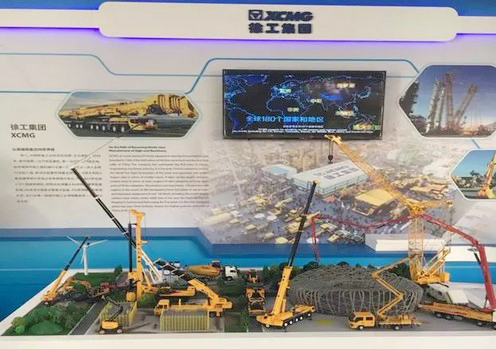 علي المعرض "مشهد البناء الكامل "الواقعي لنموذج الأجهزة لXCMG على طاولة الرمال، وهذا يجذب المبعوثين والضيوفمن جميع أنحاء العالم ويتوقفون عن مشاهته.