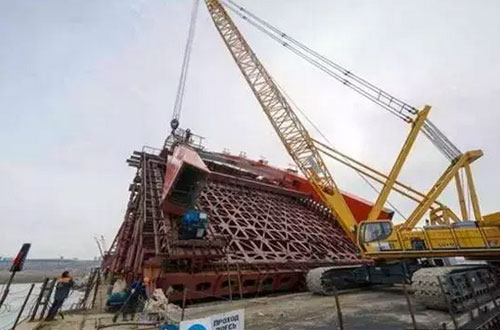 الرافعة المجنزر بطراز QUY180 لمجموعة XCMG تعمل في مشروع بناء الجسر والطريق العام في سيبيريا الجديدة الروسية