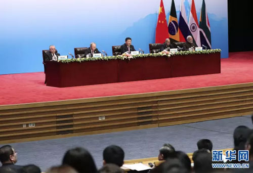 في 4 سبتمبر، حضر الرئيس شي جين بينغ مؤتمر الحوار لمجلس أعمال مع قادة دول بريكس في مدينة شيامن، وألقى كلمة فيه، حيث حضره أيضا الرئيس البرازيلي ميشال تامر والرئيس الروسي فلاديمير بوتين ورئيس الوزراء الهندي نارندرا مودي ورئيس جنوب أفريقا جاكوب زوما.