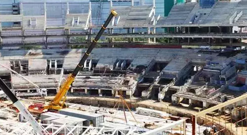 رافعة السيارة بطراز QY70K-I لمجموعة XCMG تشارك في مشروع بناء استاد كرة القدم لكأس العالم في ساو باولو في برازيل