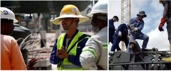 في مواقع العمل الخارجية للحزام والطريق عاملون مشغولون