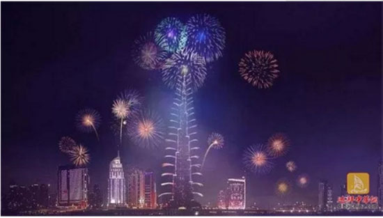 لا شك أنه أعظم سنة جديدة صينية في تاريخ دبي وعند حلول عيد الربيع، يعرض برج خليفة دبي أداء الأضواء الرائع وسجل الناس كثيرا من الفيديوهات والصور وربما تكون عواطف السنة الجديدة بدبي أكثر مقارنة مع ما في داخل الصين إلا بعدم وجود الأصدقاء وأهل الأسرة. إضافة إلى الألعاب النارية التقليدية والأضواء والأداء الثقافي، يطبق الصينيون أسلوبا خاصا في المباركة للسنة الجديدة إلى الوطن!