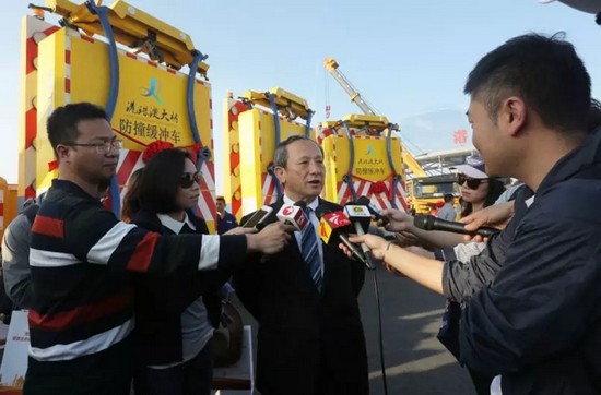 وقف السيد وانغ مين في نقطة الانطلاق لجسر هونغ كونغ وتشوهاي وماكاو، وتكلم بقوة: