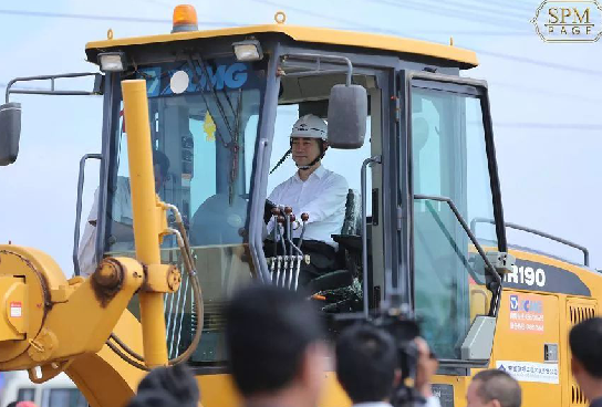 قيادة السفير الصيني لدى كمبوديا شيونغ بو كريدر XCMG GR190 بنفسه
