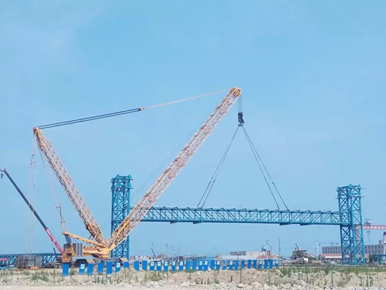 الرافعة XGC16000 ترفع الجسر المغطى بين ضفتي النهر بطول 90 متر