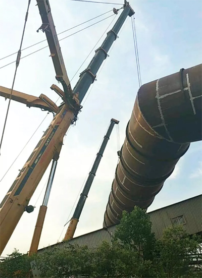 مشروع فحص وصيانة الأجهزة الكيماوية في بلدة قاوتشياو بمدينة شانغهاي، طلب فحص وصيانة الأجهزة له كبير، وحجم أعمال المشروع كبير، والأشياء المرفوعة ثقيلة نسبيا وطلب وظيفة الأمن مرتفع. تعمل الرافعة بطرز QAY650 مع الرافعة بطراز QAY500 والرافعة بطراز QAY300، وتتعاون بشكل كمال لضمان إنجاز العمل بأمن وفعالية مرتفعة.