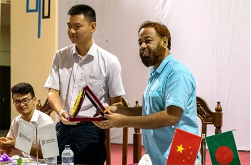 السيد وانغ شواي مدير الفرغ البنغلاديشي لمجموعة XCMG وزع المنحة الدراسية العالمية لمجموعة XCMG على الطلاب الجامعيين المحليين