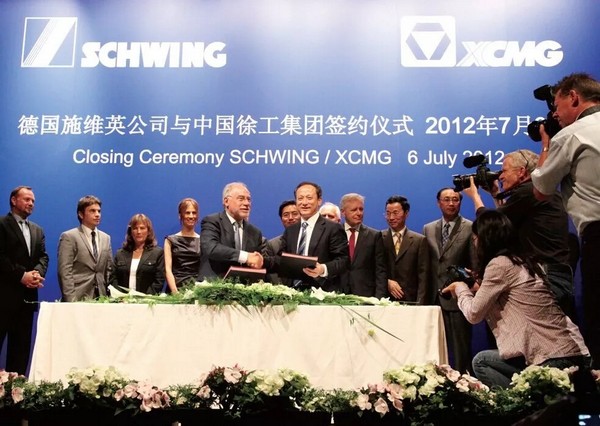 في عام 2012، تعاونت مجموعة XCMG مع شركة SCHWING الألمانية، حيث استثمرت رأسمال في هذه الشركة ووفرت لها مصدر التمويل وأعادت حيويتها من خلال طلب الأكفاء الممتازة وتطوير المنتجات الجديدة وتقوية الإدارة والسيطرة على الشركات الفرعية في الخارج وغيرها من الاجراءات، الأمر الذي حققت أرباح لسنتين متتاليتين، وتحافظ على التفوق الجديد لخلاطة أسمنت الأمريكية الأوربية ورفعه باعتباره الماركة الأولى. بالإضافة إلى ذلك، اشترت مجموعة XCMG مجموعة أف تي(FT) الألمانية لتقنيات الضغط الهيدروليكي، واشترت شركة أي أم سي أي(AMCA) الهولندية لتقنية الصمام.