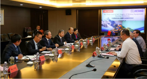 بعد تلقي مجموعة XCMG الإبلاغ برساء مناقصة مجموعة ريتو المعدنية المشهورة عالميا عليها في بداية أكتوبر، قام السيد مارك دافيس نائب الرئيس التنفيذي للشراء العالمي لمجموعة ريتو وفريقه بزيارة خاصة لمجموعة XCMG لتوقيع الاتفاقية في 30 أكتوبر.