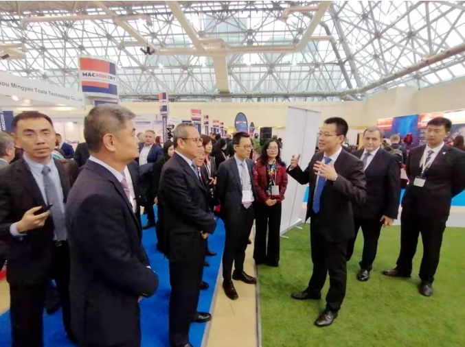 خلال فترة المعرض، زار الوزير المفوض الصيني لدى السفارة الروسية لي زينغ يوان ونائب رئيس غرفة تصدير واستيراد المنتجات الميكانيكية الكهربائية الصينية وانغ قوي تشينغ ونائب رئيس غرفة التجارة والصناعة الروسية Dmitry Kurochkin وغيرها من المسؤولين وحوالي 40 ممثل عميل صناعة الميكانيكيا الهندسية المحلية الروسية جناح XCMG. وقدر الوزير المفوض لي زينغ يوان مساهمات بارزة تقدمها XCMG في بناء البنية التحتية بروسيا وآسيا الوسطى تقديرا عاليا، كما شجع XCMG في تحقيق هدف التنمية لتسلق قمة الصناعة العالمية.