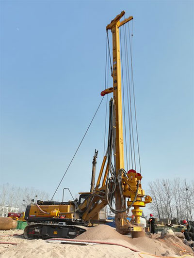 Basado en su demostrada experiencia en técnicas de aplicación de plataformas de perforación rotativas y en el diseño detallado y los conceptos de fabricación esbelta (“Lean Manufacturing”), XCMG ha conseguido desarrollar y emprender esta variante innovadora por medio del perfeccionamiento general de los sistemas de potencia, líneas motrices y estructuras principales de sus productos existentes. Además de funciones más versátiles y un 20% más de rendimiento alto de su cabezal de potencia y cabrestante principal, el equipo recientemente lanzado tiene un excelente mecanismo de doble brazo mecánico de estilo paralelogramo para obtener una mayor variedad de ángulos de soporte y un refrigerador de aceite hidráulico independiente de alta potencia de temperatura controlada para responder a las duras condiciones operativas en las regiones tropicales. Gracias a la técnica de cuerda única para cabrestantes principales y auxiliares, es más flexible y eficiente, y puede cumplir diversos requisitos de varios proyectos de construcción. Según algunas estadísticas de datos operacionales, tiene una capacidad de perforación media diaria de 4-4.5 agujeros, y una capacidad media de colocación de 3-4 pilares por turno, una eficiencia mayor que las de sus similares.