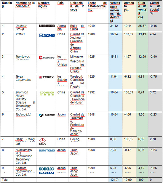 La lista de los 10 principales fabricantes mundiales de grúas en 2018