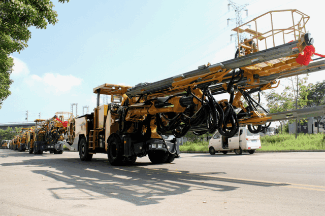 El año 2010 se inició la investigación y desarrollo de la plataforma de perforación de roca de XCMG con tres brazos, en 2012, se lanzó el primer producto con éxito al mercado, el producto ha ayudado a muchos proyectos clave nacionales. A través de la innovación tecnológica continua, XCMG ha mejorado constantemente el rendimiento, la estabilidad y eficiencia de construcción, y ha ganado el reconocimiento y reconocimiento del mercado.