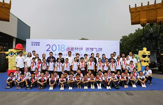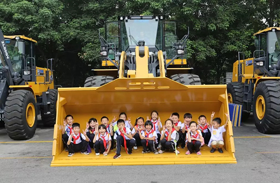 Frente a los cargadores en producción en los talleres y líneas de fabricación inteligente, las semillas interesadas por la producción de maquinaria de construcción comenzaron a brotarse. XCMG les preparó una representacion de cargadores de dirección deslizante que provocó muchos aplausos y risas. Además, unos diez cargadores expuestos también levantaron sus abrazos para dar la bienvenida a los futuros “talentos de XCMG”.