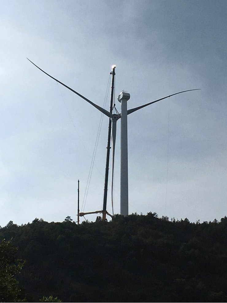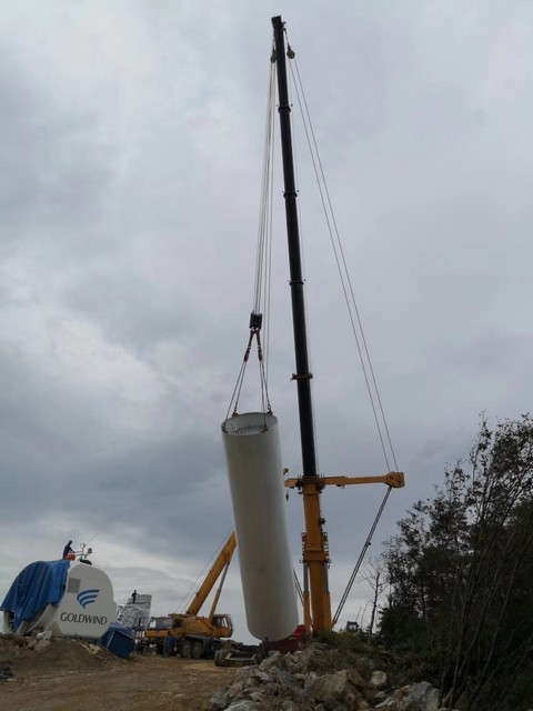 El proceso clave del levantamiento consistía en el montaje del gigante hélice, que medía más de 100 metros. En aquel momento la velocidad del viento había llegado a 16 metros por segundo, el valor límite de operación. La altura de la torre Jinfeng 2.0 era 85 metros, y el peso del hélice era 62t, lo cual formó una máxima prueba para la grúa.