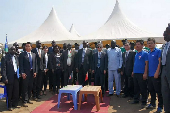 El embajador He, el primer vicepresidente de Sudán del Sur y el personal de XCMG