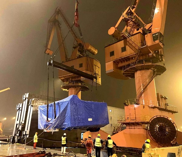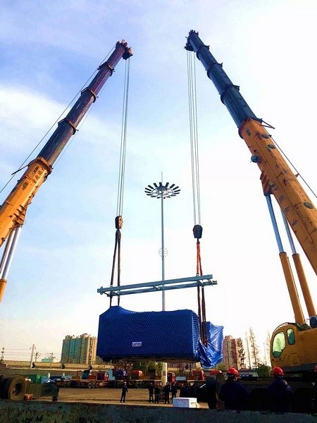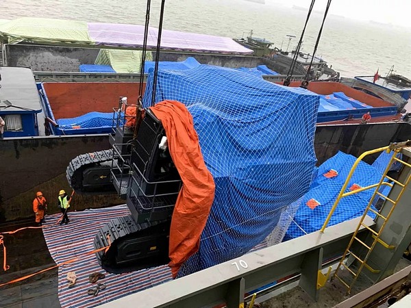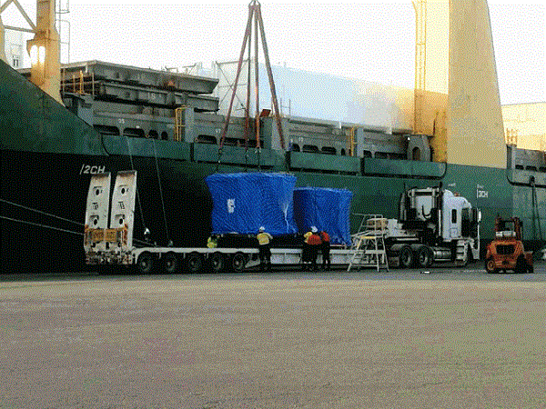 Debido al volumen grande, es muy difícil de transportarlos desde Xuzhou hasta Shanghai, y pues hasta Australia. Se necesita realizar la elevación con vehículos específicos en todos los muelles.
