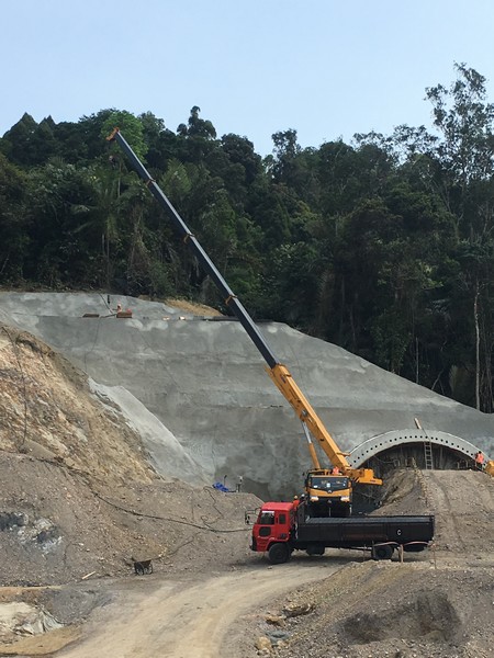 En un sitio de construcción de túneles, las grúas XCMG están ocupadas trabajando。