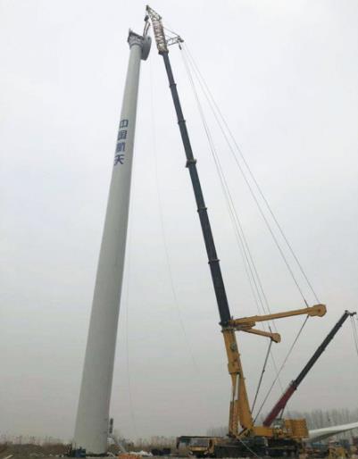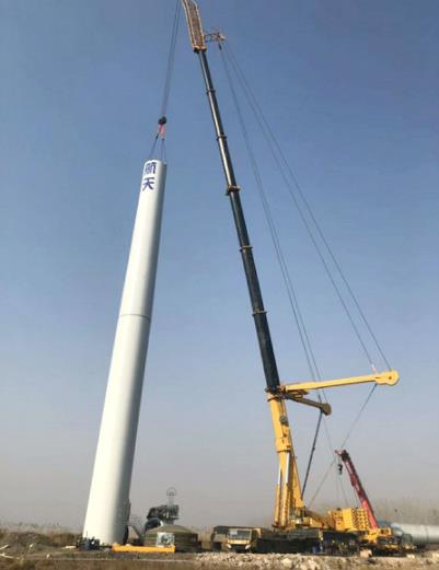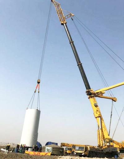Este proyecto de instalación de energía eólica se ha aplicado una condición de operación especial, relativamente difícil y totalmente diferente de los casos predominantes de la elevación por la pluma principal en el pasado. Y los parámetros reales de un generador de 2.0MW han llegado a los estándares internacionales para generadores de 2,5 MW. Tanto la altura de elevación como el peso de la cabina consisten un desafío serio para la grúa todo terreno QAY1200A de XCMG.