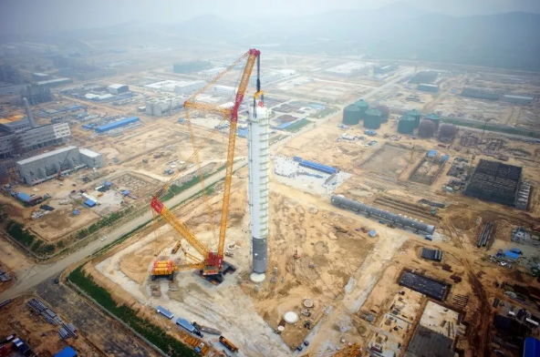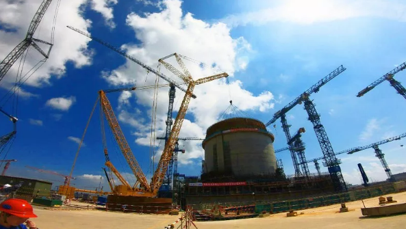 La grúa sobre orugas de 2000 toneladas del XCMG ayuda a finalizar la ceremonia de ¨Coronación¨ de ¨Hualong 1¨.