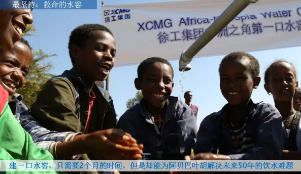 Mientras ayuda a los clientes globales en sus éxitos, el XCMG se ha involucrado profundamente en la responsabilidad del "XCMG y hace el mundo más bueno". Ha implementado 14 tipos de proyectos de bienestar público en cinco campos principales: alivio del terremoto, ayudas educativas, alivio de la pobreza, desarrollo industrial y protección ambiental. En los últimos 10 años, le XCMG ha participado en 20 grandes rescates de desastres en todo el mundo, y ha desplegado 568 máquinas de gran escala con un valor total de más de 200 millones de yuanes y ha donado más de 30 millones de yuanes a las áreas afectadas por desastres. Desde 2016, el XCMG ha construido 41 bodegas de agua en Etiopía para resolver el problema del agua potable segura para más de 4,000 aldeanos y estudiantes locales.