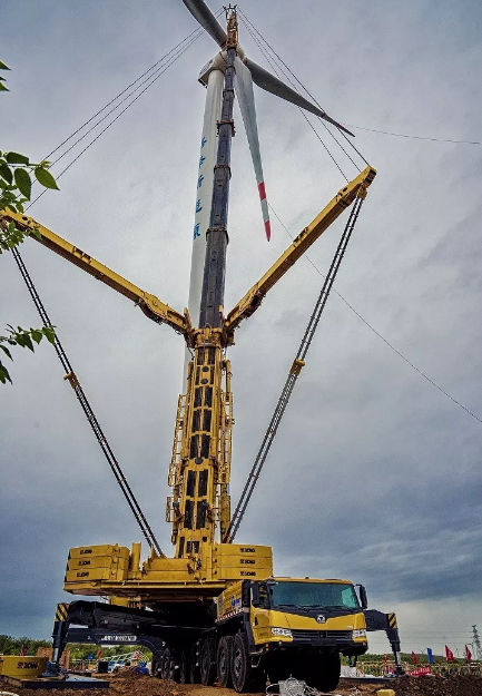 Wind poLa primera grúa todo terreno XCA1200 de ocho ejes y 1200 toneladas está utiliza en la instalación de energía eólica de Ningxia.