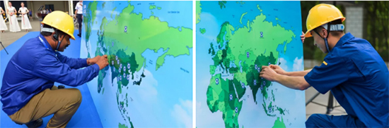 Los conductores marcan personalmente su ciudad natal en el mapa del mundo. Las marcas del XCMG densamente se puede interpretar perfectamente el "XCMG de clase mundial".