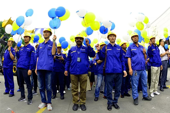 Sr. Ge LI, el subsecretario del Comité del Partido del XCMG, Sra. Ying WANG, el subsecretario del Comité del Partido del Departamento Comercial de raspadora, Sr. Aijun YU, el secretario Adjunto del Comité del Partido de la División de Maquinaria, Sr. Nan JIANG, el secretario del Comité del Partido de la compañía de importación y exportación del XCMG, Sr. Yifan LIU, el secretario Adjunto del Comité del Partido de la compañía Schwing del XCMG, Sra. Yuehong Feng, la secretaria del Comité del Partido y la decana del colegio de técnicos del XCMG, 10 representantes de docentes, representantes del personal y 15 aprendices extranjeros de 6 países, incluidos Pakistán, Filipinas, Etiopía, Kuwait, Qatar y Mongolia y 75 participantes en cursos de capacitación de 9 provincias de todo el país asistieron a la ceremonia