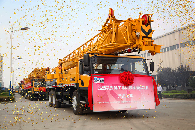 , Na tarde de 24 de setembro, o estaleiro de produção do XCMG na Zona de Desenvolvimento Económico e Tecnológico de Xuzhou estava em uma coluna quadrada, com muitos convidados aqui reunidos e as fitas coloridas, aparecendo uma atmosfera festiva. A cerimônia foi realizada aqui para enviar os 197 produtos de maquinaria de engenharia do projeto XCMG - Bolívia. Estes dispositivos incluem os produtos da série, como guindastes, tratores, carregadeiras, guindastes de lagarta, caminhões de bomba de concreto, niveladores, escavadores e retroescavadeiras. O valor do projeto é superior a US $ 20 milhões, que é mais um avanço do XCMG no mercado da América do Sul após a maior encomenda de maquinaria de engenharia do projeto XCMG - Venezuela.