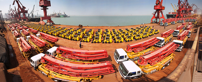 17 de abril, no Porto de Lianyungang, 60 caminhões de bomba de concreto e 122 minicarregadeiras da Xuzhou Maquinaria foram dispostos de maneira alinhada em várias fileiras uniformes e com flores vermelhas de congratulação penduradas em suas carcaças, causando uma impressão solene. Este é o terceiro lote de produtos do projeto V58 enviado pela Xuzhou Maquinaria. Os produtos enviados em período posterior pela Xuzhou Maquinaria para a Venezuela já exibem sua superior performance na construção de habitações acessíveis, pistas, estradas etc, recebendo grande elogio por parte dos cidadãos locais e do governo do país, de modo que tem exercido um importante papel na construção local.