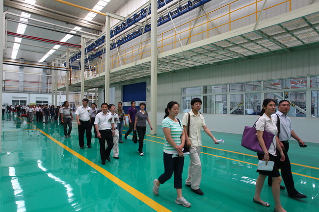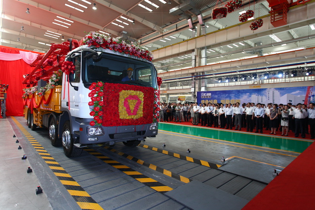 Durante o processo de visita, foram realizadas solenemente as cerimônias da saída da linha de produção do primeiro carro de bombeamento de concreto e do primeiro guindaste de superfície completa em suas respectivas bases de fabricação.