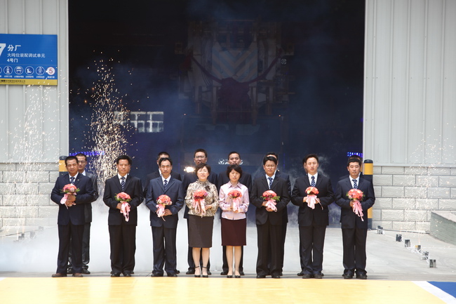 Durante a cerimônia, sob o barulho dos fogos e a liberação de fitas coloridas, as lideranças e os ilustres convidados cortaram a fita colorida em comemoração do término das obras das quatro grandes bases de fabricação da XCMG e do início da produção nas mesmas. O condutor do evento convidou os líderes da tribuna e todos os ilustres convidados para que testemunhassem o primeiro equipamento a sair da linha de produção. Sob a atenção de inúmeras lentes e flashes, todos fizeram a contagem regressiva: 5, 4, 3, 2, 1. A poderosa carregadora LW800K, rompendo o cenário formado por rochas e pedregulhos, foi conduzida até a boca da saída da linha de produção. Sob o som de aplausos e o esplendor da ocasião, ouviu-se o som de espanto e surpresa dos convidados presentes. Quando o Vice-Presidente de Maquinaria da XCMG e Gerente Geral de Tecnologia da XCMG Yang Dongsheng entregou a “chave de ouro” – que representa credibilidade e honra – da primeira carregadora a sair da linha de produção ao comprador do produto, o Gerente Guan, de Liaoning, todos os presentes no local aplaudiram com o maior entusiasmo, levando o evento a atingir o seu climax.
