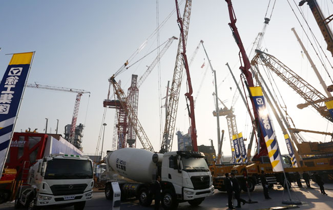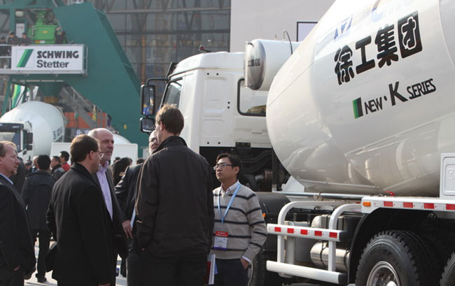Na situação atual do setor de maquinaria de concreto da China, que experimenta lento crescimento, a XCMG sobe contra a correnteza, de modo que as suas vendas tem mostrado crescimento duplicado por três anos consecutivos, criando o mais rápido milagre da história do ramo de maquinaria de concreto. Durante a Bauma Expo desta vez, a XCMG exibiu uma nova geração de máquinas de concreto série K, que inclui: caminhão-bomba 50 m – caminhão-bomba de 3 eixos com a mais longa lança feita completamente de aço do mundo; caminhão-bomba 60 m – caminhão-bomba de 4 eixos com a mais longa lança feita completamente de aço do mundo, carro de transporte de mistura de concreto de 4m³ ; “rei dos túneis” do ramo de maquinaria de concreto, com carro de transporte de mistura de concreto de 12m³; carro de mistura de concreto, conhecido no ramo por seu sucesso na aplicação de tecnologia de mistura de dupla espiral, carro de transporte de mistura de concreto 16m³. A marca estabelecida pela XCMG emprega carro de transporte de mistura de concreto cuja fonte de energia é o gás natural, com carro-bomba de 120K, primeiro modelo do ramo a empregar super-pressão gerada por motor duplo.