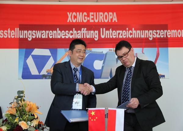 Com a influência forte da marca da XCMG acumulada no mercado de máquinas de construção e os produtos avançados, na manhã do dia 15 de Abril, o primeiro dia de exposição, já se receberam muitas notícias boas. Todos os equipamentos expostos foram ordenados pelos clientes presentes e a notícia mais encorajante foi que no local XCMG assinou com um cliente europeu um contracto de mais de 120 unidades cujo valor total ultrapassou mais de 8 milhões de euros, o que prova mais uma vez o reconhecimento dos usuários que a XCMG tem ganhado em todo o mundo sobretudo no mercado europeu.