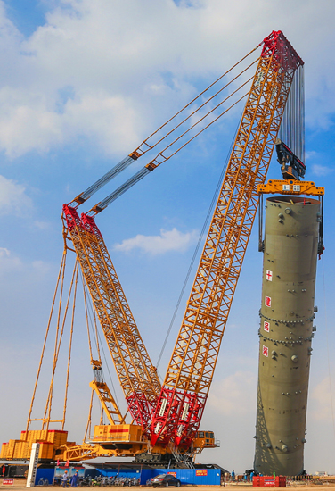 O XCMG Maior Guindaste de mundo XGC88000 realizou com sucesso a elevação duma torre de propano de 1.680 toneladas sob condição de lança de 108m, jib de 33m, faixa de operação de 30m, carga nominal de 1.790 toneladas num Parque Industrial de Sinpec em Yantai em julho. Após o primeiro show perfeito se realizou desmontagem e transporte de XGC88000 por distância de 1.600 através de metade da China ao lugar de Obra de Liquefação de Carvão do Grupo Shenhua de Ningxia de 4.000 mil toneladas anual.