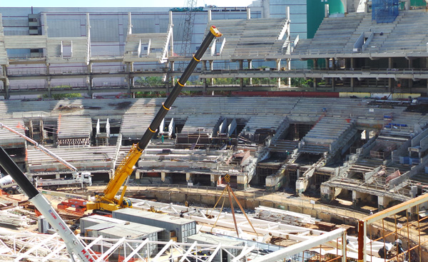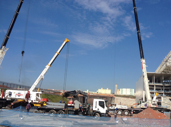 Guindastes da XCMG trabalhando no Itaipava Arena Fonte Nova em Salvador