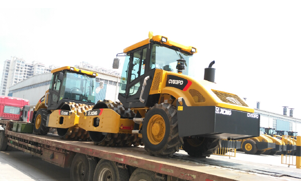 Recentemente, 14 CV83PD rolos compactadores Vibratórios de XCMG exportam em lotes para EUA, incluindo 4 unidades equipadas com tenda de condução e 10 unidades equipadas com cabine de condução, é um outro lote de produto de roda de aço único seguindo CV122U rolo compactador vibratório enviado para mercado norte-americano.