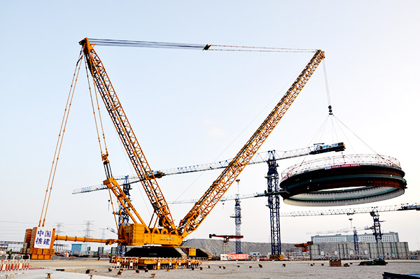 Recentemente, um outro módulo de revestimento de aço de unidade 5# para o projeto piloto de energia nuclear Hualong One foi levantado pelo guindaste sobre esteiras XCG28000. O objeto gigante com 157 toneladas de peso foi erguido com êxito para o local designado pelo braço do guindaste. Esse guindaste de grau de mil toneladas da XCMG novamente brilhou no campo de levantamento nuclear.