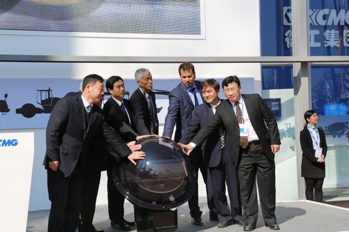Em 10:45 da hora local de Munique, o botão da cerimônia de abertura foi iniciado em conjunto por Qi Jun presidente da China Construction Machinery Industry Association, Yu Dongke diretor do Engineering Agricultural Machinery Branch CCCME, Collin Davis diretor do Munich Trade Fairs International Group, Albert Cervero vice-presidente da American Association of Equipment Manufacturers, David Stowe diretor de vendas global do British KHL Group, Li Suoyun vice-gerente geral da XCMG, Sun Jianzhong vice-presidente da XCMG Machinery e presidente da Import & Export Corporation, e Liu Jiansen assistente de presidente da XCMG Machinery e gerente-geral da Import & Export Corporation. Foram lançados oficialmente em todo o mundo pela primeira vez os guindastes de todo-o-terreno XCA100_E, carregadores de grande tonelagem LW1100K e escavadeiras hidráulicas sem cauda XE35U da XCMG, e foram reproduzidos os vídeos de apresentação desses novos produtos no local, para ajudar os clientes a compreender mais claramente as vantagens de desempenho dos produtos e capacidades de pesquisa e desenvolvimento.