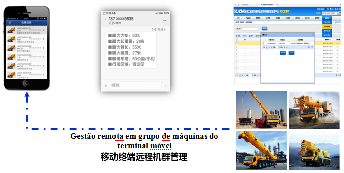 A XCMG mais cedo em 2012, járealizou a instalação do terminal GPS de todos os produtos. Atualmente, recorrendo à plataforma de rede de coisas interna da empresa, pode realizar a monitoração remota dos parâmetros de trabalho de cada automóvel. Os clientes também podem utilizar o sistema de mordomo inteligente do telemóvel, pesquisado e desenvolvido independentemente pela XCMG, para monitorar em tempo real a posição do automóvel, as informações de construção, etc., fornecendo facilidades para os clientes utilizarem o terminal móvel a realizar a gestão remota em grupo de máquinas.