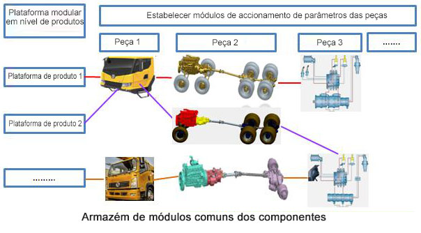 A aplicação da modularização da máquina inteira da indústria de máquinas de construção é relativamente mais madura, mas ainda há grandeespaço de desenvolvimento para a aplicação da modularização dos componentes, no próximo passo a XCMG irá-se dedicar a montar uma plataforma de modularização dos produtos no nível de componentes, construindo o armazém de módulos comuns dos componentes, elevando a compatibilidade, a confiabilidade dos produtos, reduzindo os custos do usuário.